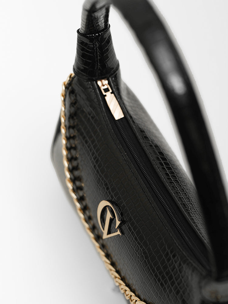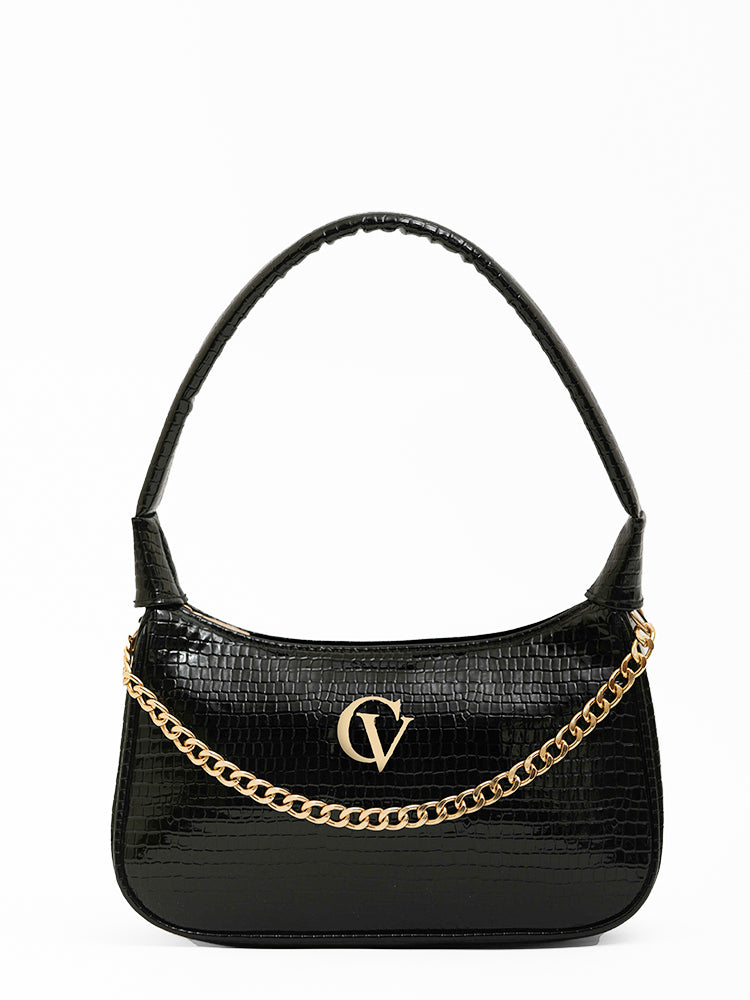 Elevate your everyday look with the Civora Prime Bag — where elegance meets modern design. Crafted from premium faux leather with a sleek croc texture, this bag is a true statement piece. The gold-tone CV emblem and matching chain detailing add a touch of luxury, making it perfect for both day and night wear.