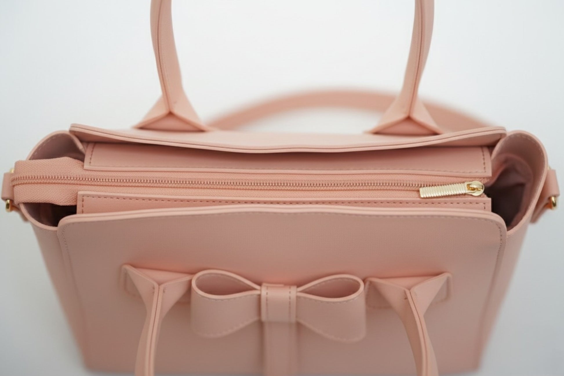 Refined, chic, and effortlessly feminine — the Bow Bag adds a touch of charm to any outfit. Crafted from high-quality faux leather, this bag features a sleek silhouette highlighted by an elegant front bow. The gold-tone hardware enhances its polished look, while the detachable strap offers versatile styling for both hand-carry and crossbody wear.