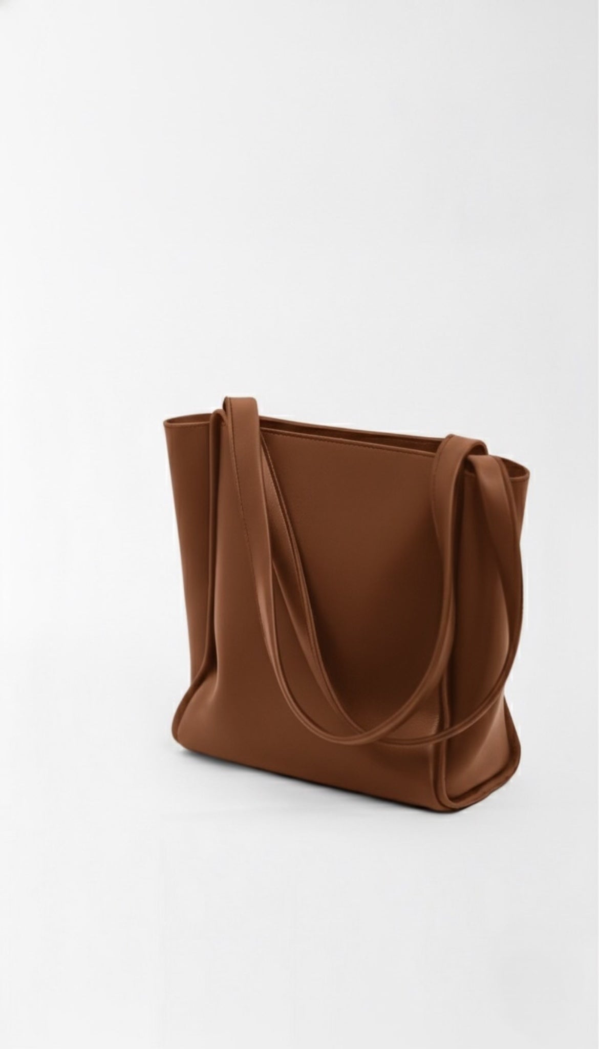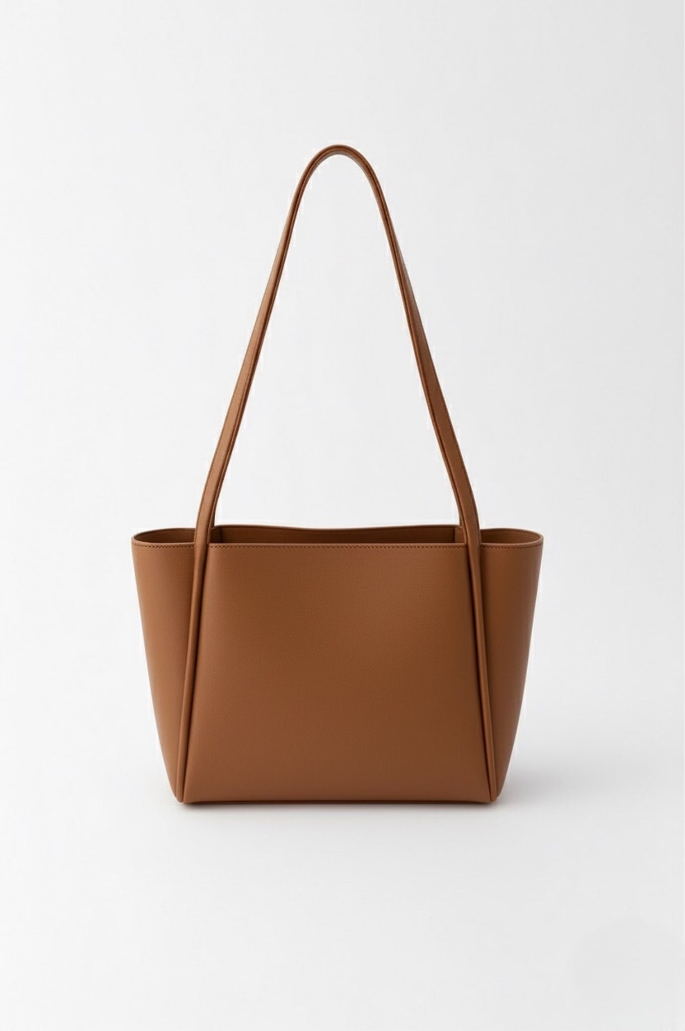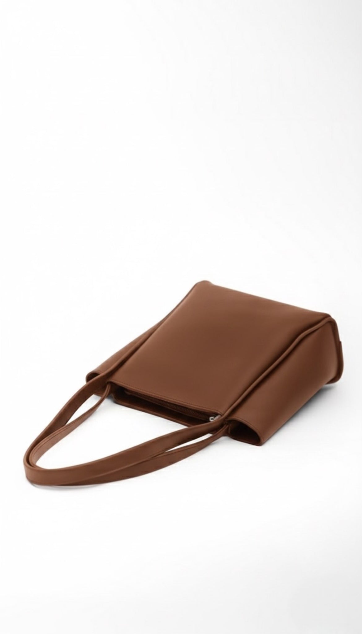 Embrace timeless minimalism with the Civora Royal Tote Bag, a sleek essential where style meets practicality. Crafted from smooth, high-quality faux leather, this tote features a clean, structured silhouette with a subtly flared base for a modern, sophisticated look. Designed for everyday versatility, it includes a top zipper closure for added security, a matching pouch, and an inner zip pocket to keep your essentials organized and within reach.